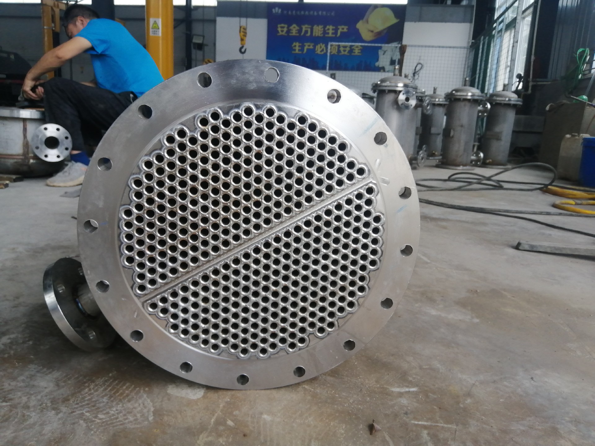 不锈钢列管式换热器是目前化工及酒精生产上应用较广的一种换热器。它主要由壳体、管板、换热管、封头、折流挡板等组成。所需材质,可分别采用普通碳钢、紫铜、或不锈钢制作。在进行换热时,一种流体由封头的连结管处进入,在管流动,从封头另一端的出口管流出,这称之管程;另种流体由壳体的接管进入,从壳体上的另一接管处流出,这称为壳程列管式换热器。